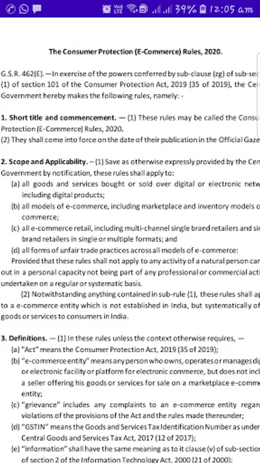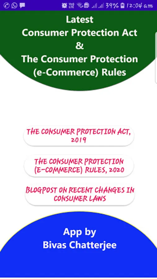 This app provides the Consumer Protection Act, 2019 and Consumer Protection (E-commerce) Rules, 2020 in India