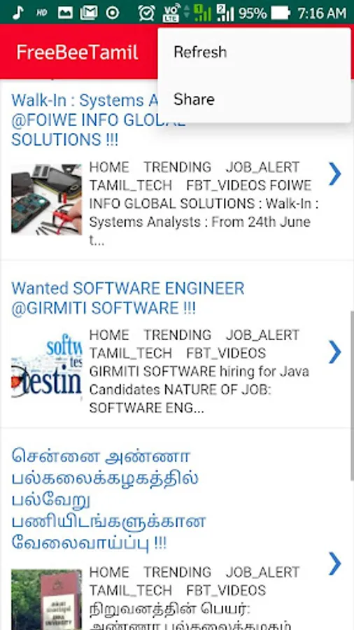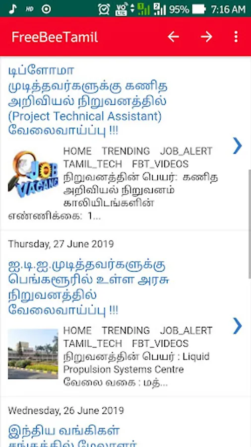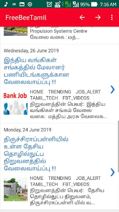 Our FreeBeeTamil app is the best app in tamil which provides detailed job notifications for all kind of jobs. FreeBeeTamil app gives you the alert about all government competitive job exams including TNPSC, Railway exam (RRB), Civil Services, IBPS, Bank PO and clerk, SSC, CTET. FreeBeeTamil app ais the best app for employment news alert.