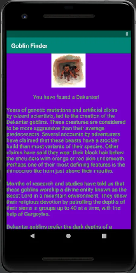 Do you have a fear of Goblins? Have you ever thought of a loved one or your significant other could be one of these vile creatures? Forget about seeing a therapist for your obvious mental problems, download Goblin Finder today to satisfy your ridiculous concerns!