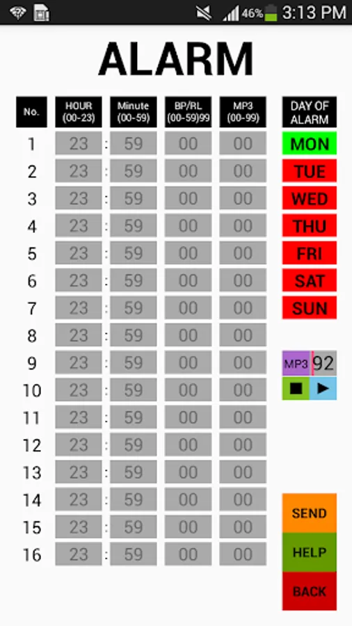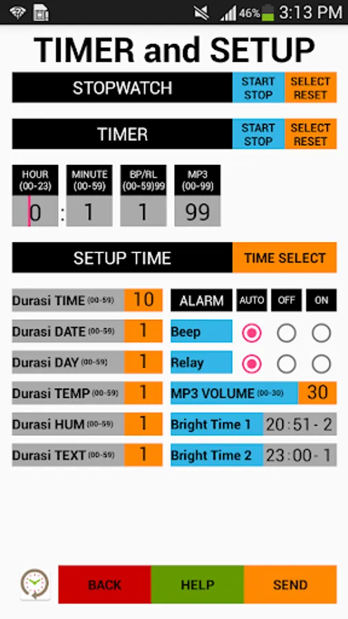 - Setup alarm dengan 16 pilihan waktu berbeda dan 7 hari seminggu