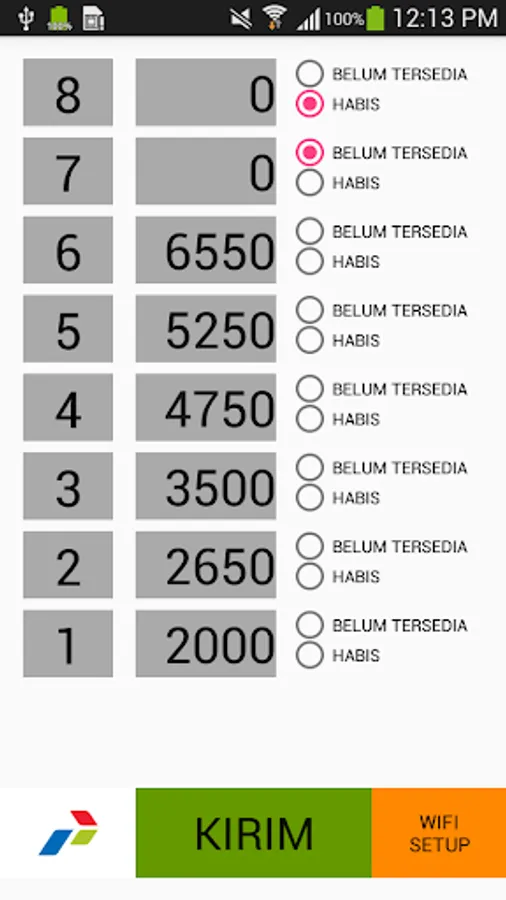 - Setup harga per liter bahan bakar