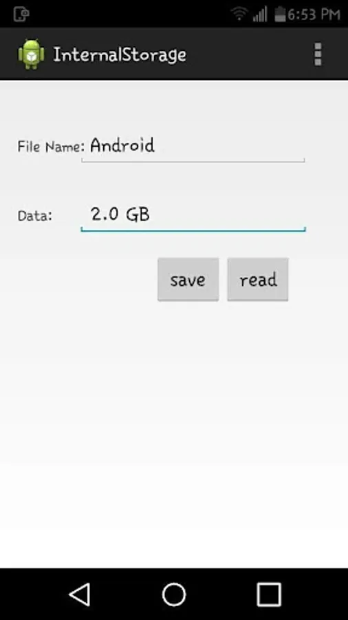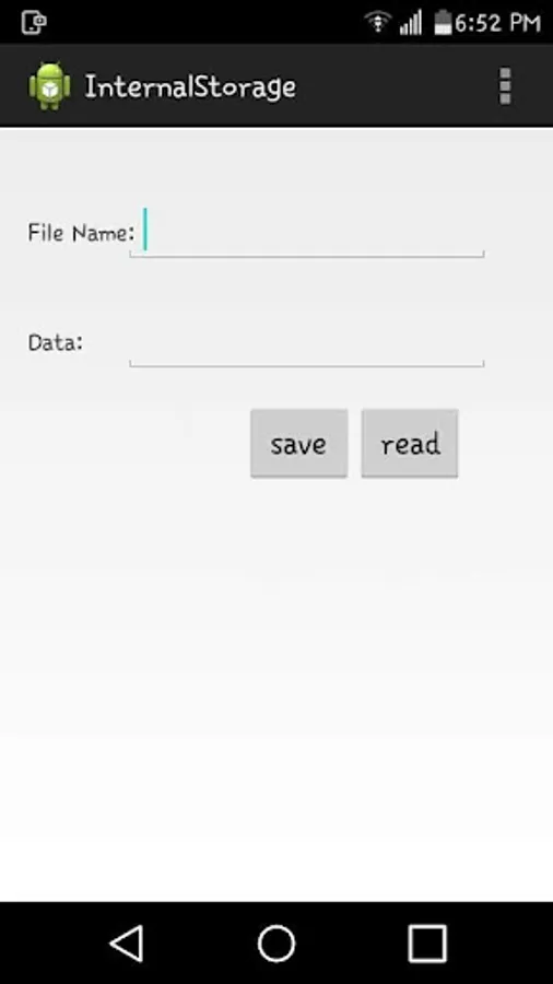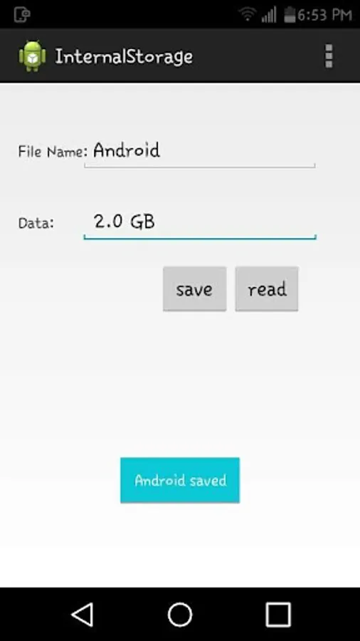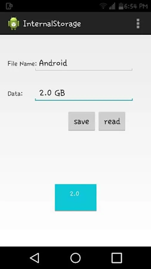 By this app you can save and read data of file of internal storage.This app is designed for save and read data of internal storage.