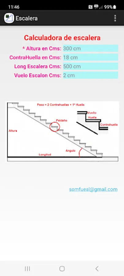 Calculate the measurements of a Stair applying Blondel's Law is: 2 Risers + 1 Tread = 64 cm. Optimum Values: Rise 18 cm, Tread 28 cm.