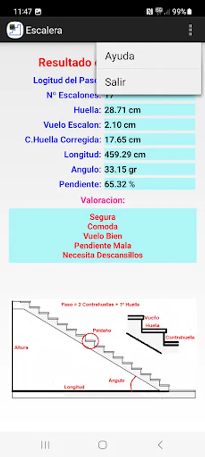 Evaluate if the ladder is safe, if it is comfortable, the value of the slope, if it needs sections.