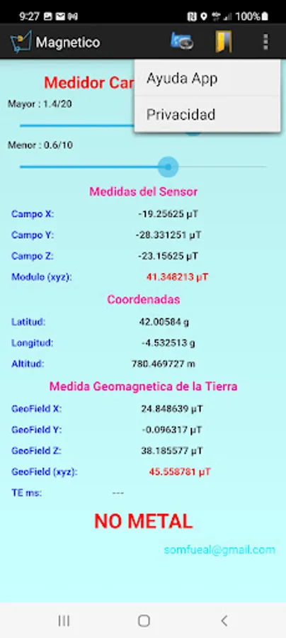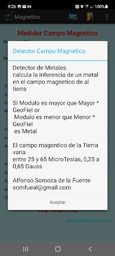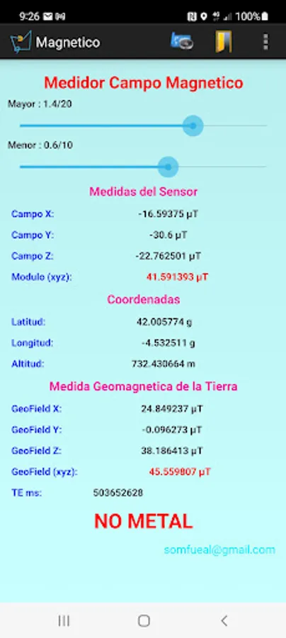 Calculate the inference of a Metal in the magnetic field of the earth, if the magnetic field of the earth is the point where you are, it is between calculated maximum and minimum values, it can be said that the detector value is influenced by a material ferromagnetic.