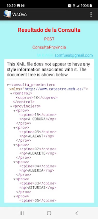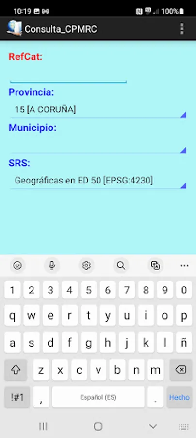 The Application consults unprotected Cadastral Data of the Web Services of the Electronic Headquarters of the Cadastre of Spain. Street map of the electronic headquarters of the cadastre and OVC Coordinates, they can be consumed in the POST, GET or SOAP methods.
