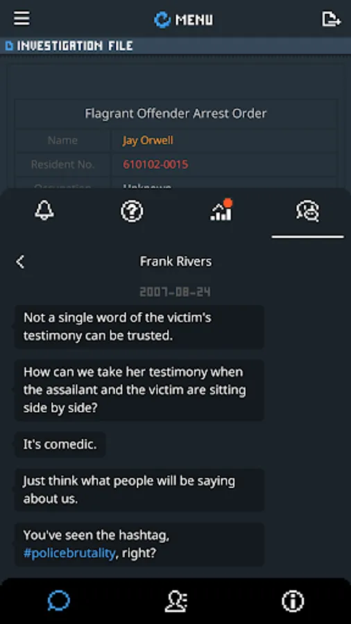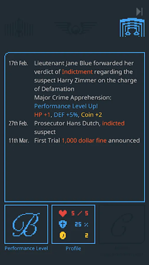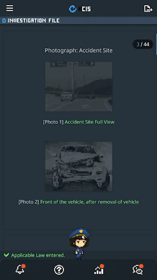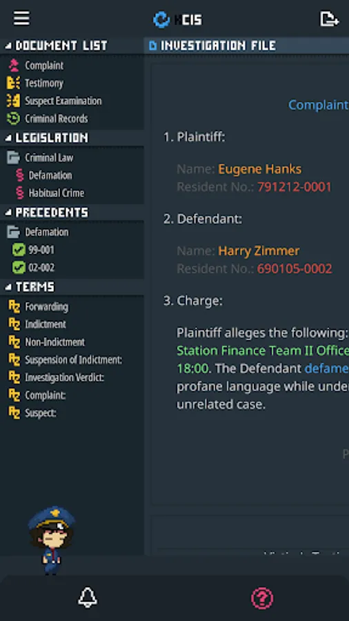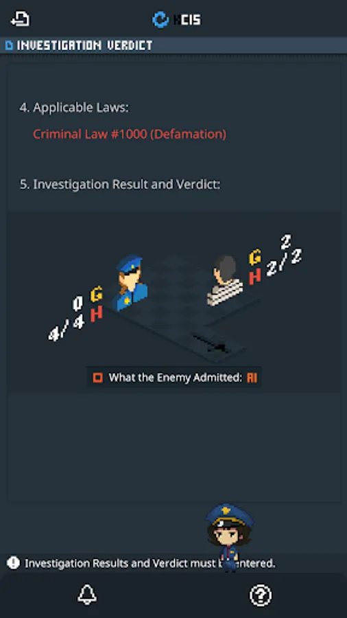 The player must review and provide an Investigation Verdict on reports ranging from petty theft to murder, in eight different criminal cases. Legal Dungeon will teach players that apprehending and punishing criminals is the very essence of Public Safety. Players will quickly become experts in revealing true criminals.