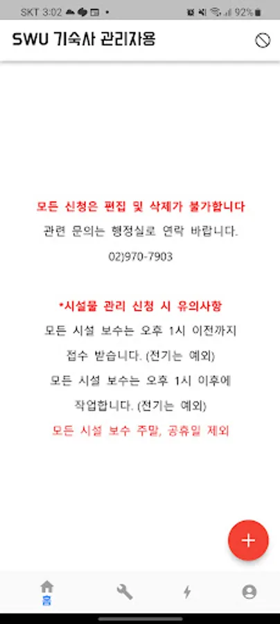 Dormitory facility maintenance application management application