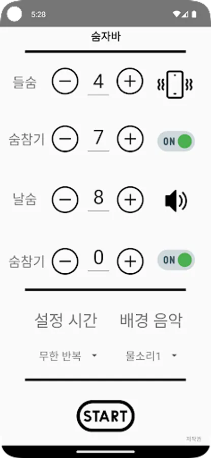 The main feature of the app is that the user can set the time for each of the four phases of breathing - inhale, hold, exhale, and hold again. This set time is expressed as a graph and designed to be visually understood. The graph not only helps control breathing, but also allows users to easily check their progress.