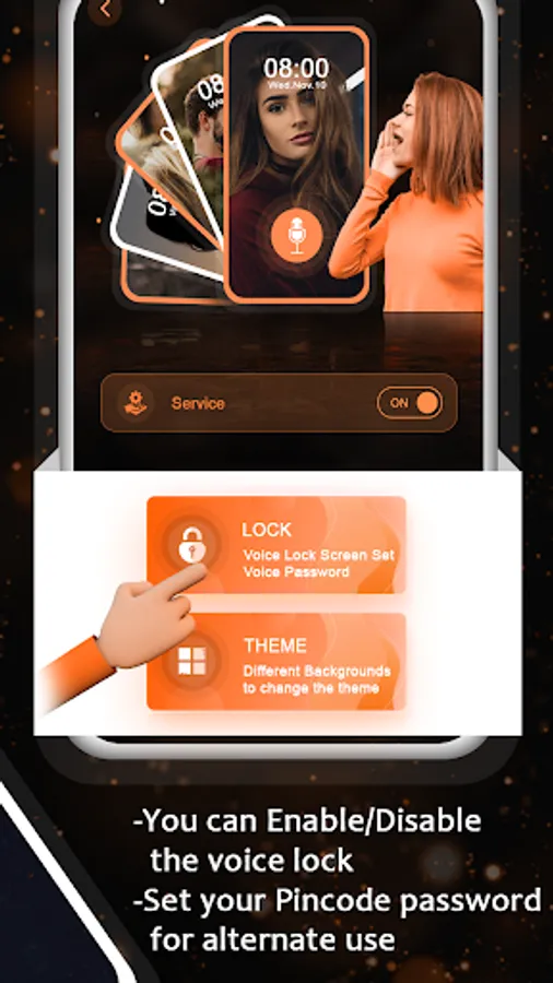 This Voice Screen Lock app detects your voice and unlocks the phone when you say the correct password. Now you can unlock the phone by your voice! First you have to start the service and then choose the voice screen lock option and then you can set the password by speaking password, and then easily set the password. You can say only one word to unlock your phone.