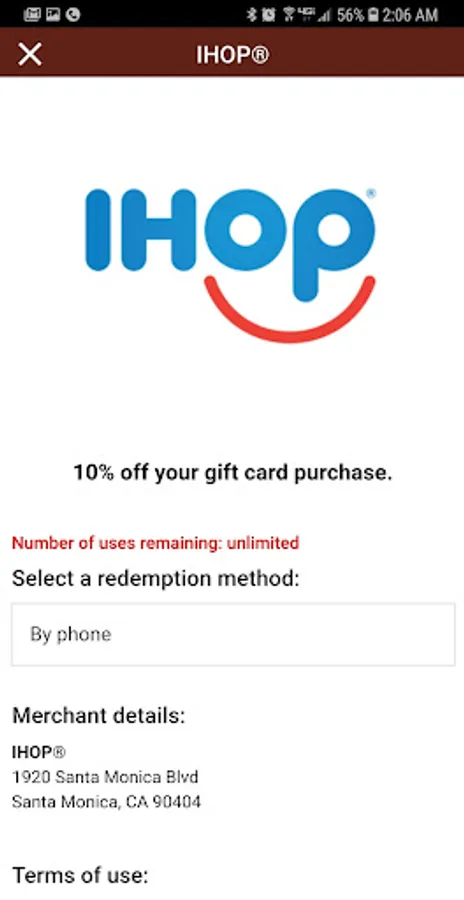 You can also change your location to any zip code in the US and continue to receive discounts everywhere you go. Select “Manage Location”, turn off the Geo-location and enter the zip code of the area you choose. For all discounts, simply select the offer and show it to the merchant to redeem. Then Smile with Savings!