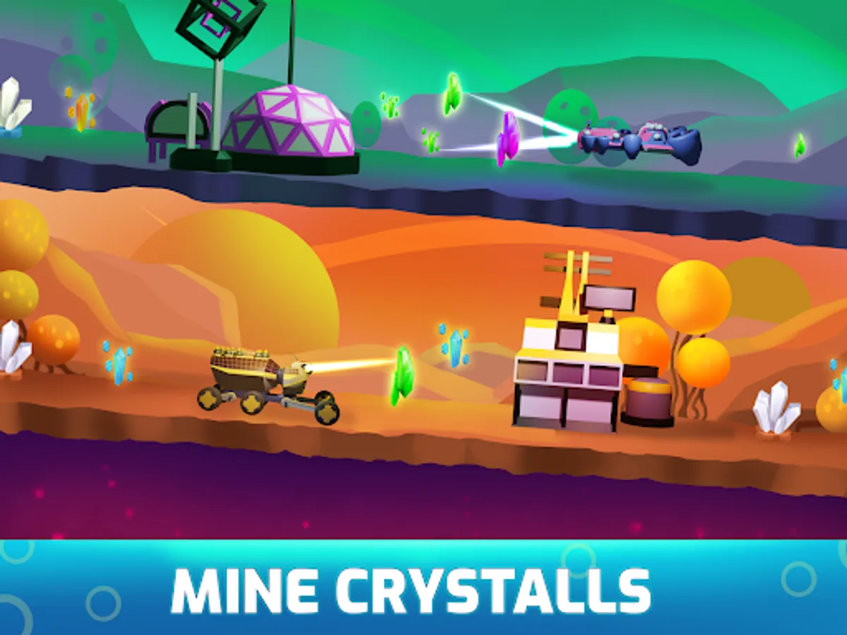Upgrade your space rover to expand your mining and increase the productivity of your rover who will automate the workflow of your factory! Create the manager strategy to mine as many space minerals as possible in this idle tycoon simulator. This is not a clicker mining game: no need for endless tapping like other clickers or idle simulator.