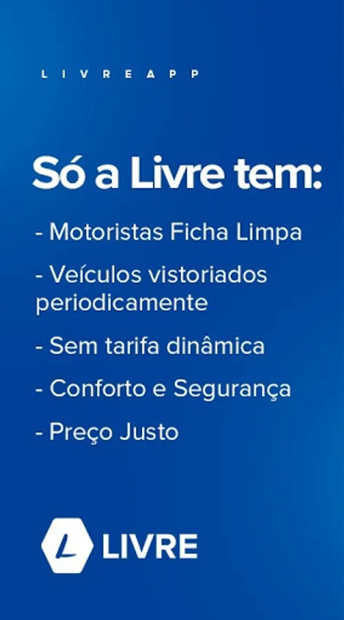 At the end of each trip, Livre's partner drivers are evaluated by our passengers so that we can always maintain excellence in our services.