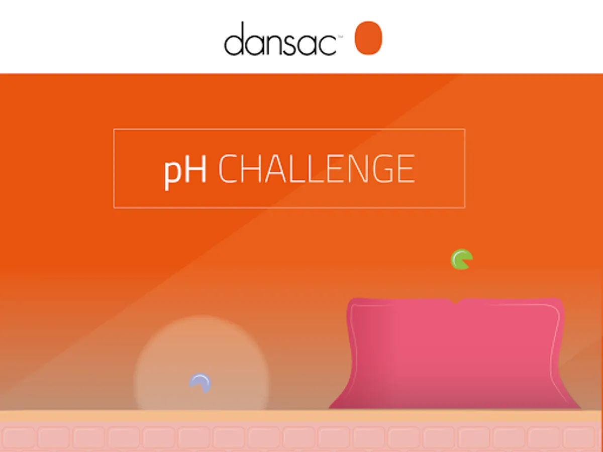 The Dansac pH Challenge App is an interactive and fun learning experience for stoma care nurses. It both helps understand the pH levels in the GI tract as well as how pH levels of effluent can affect the peristomal skin if there is an unbalance. The app makes learning fun by trying to catch digestive enzymes before they hit the skin.