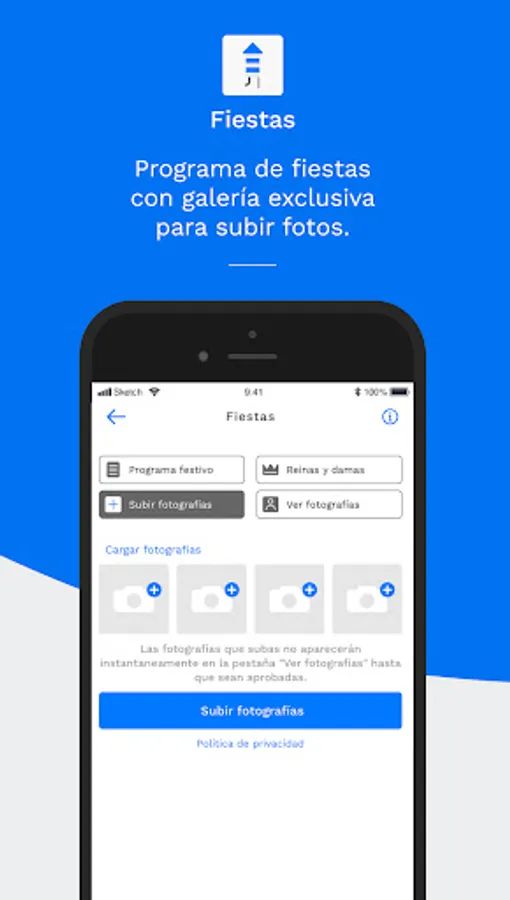 Una de las mayores ventajas de la app es la posibilidad de conocer el calendario de programaciones sobre nuestras festividades, dónde tendrán lugar los espectáculos, a qué hora y, por si fuera poco, luego incluiremos las consecuentes fotos de los eventos más importantes que se podrán visualizar directamente desde la app. Podrás identificar y descargar todas las imágenes para revivir las situaciones más alegres de cada momento.