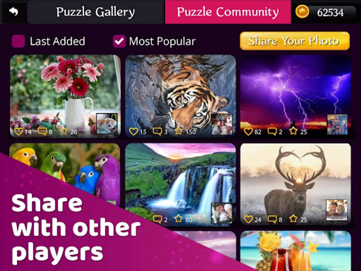 Jigsaw puzzle games in entire puzzle world is the best free hobby for adults. Take part in special puzzle games, make photo puzzles using camera and share jigsaw puzzles with your friends in entire epic puzzle world.