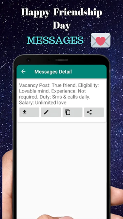 ii) It can be copied on clipboard to share friendship day wishes in the form of message, sms, status for WhatsApp, status for fb wall.