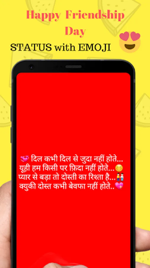 i) Download amazing fb status in Hindi love in the form of an image. This picture will contain the best Dosti ke Status for your best friend on this great day. This image will be saved on your SDcard in friendship day gift app. This image can be used as friendship day status for WhatsApp