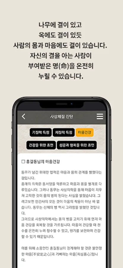 Sasang medicine has revealed the texture of the body and mind that each of us is endowed with.