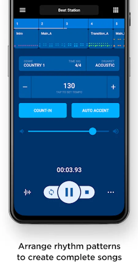 You can connect rhythm patterns to create a complete drum track that's appropriate for your own song, and play it automatically.