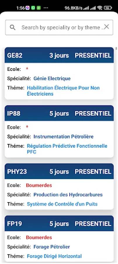 In addition, our application includes a catalog of training offered by Sonatrach IAP & SMA. Access a variety of professional training programs