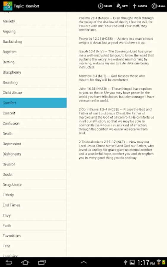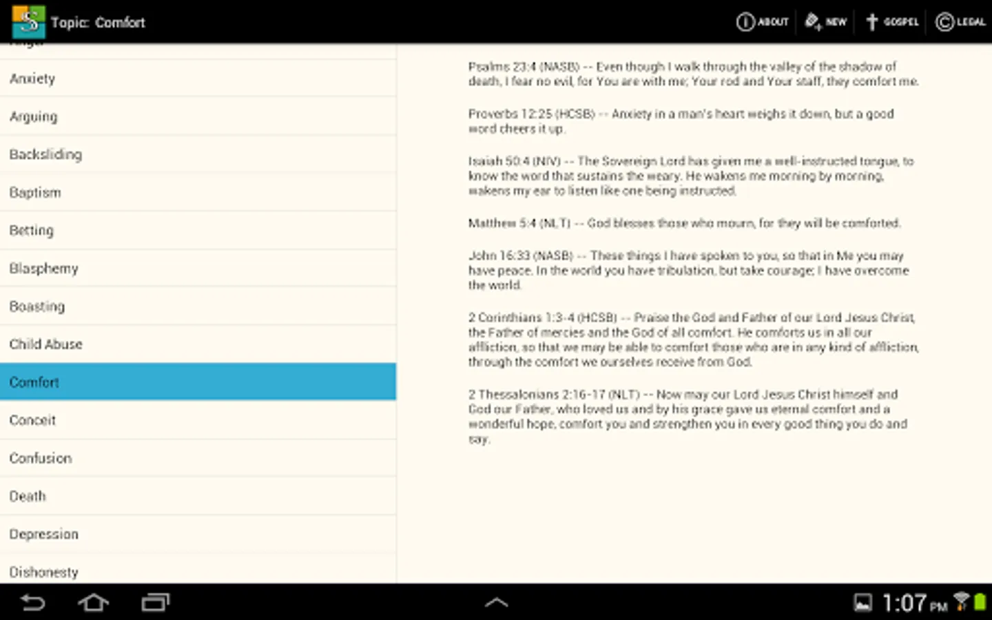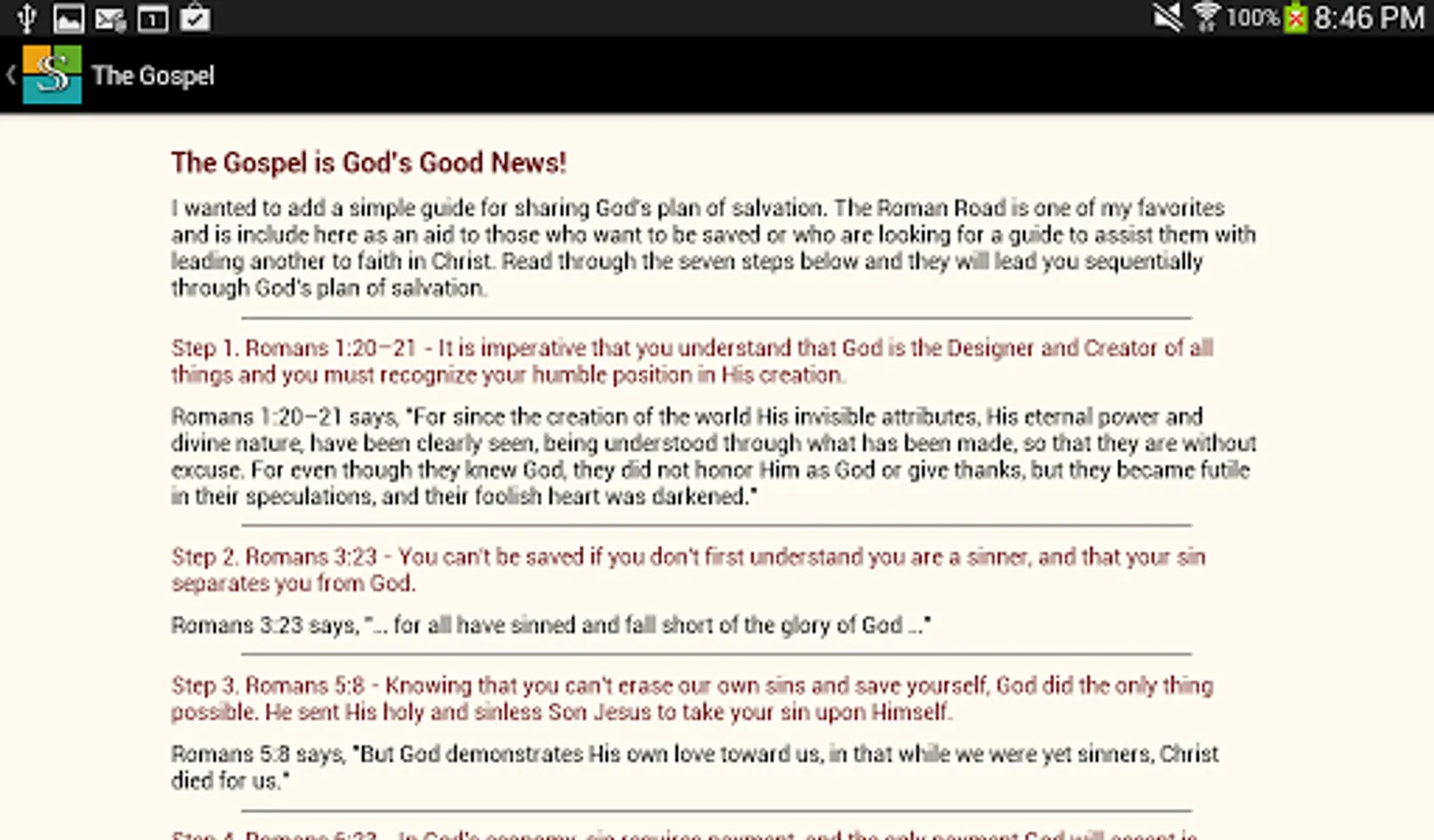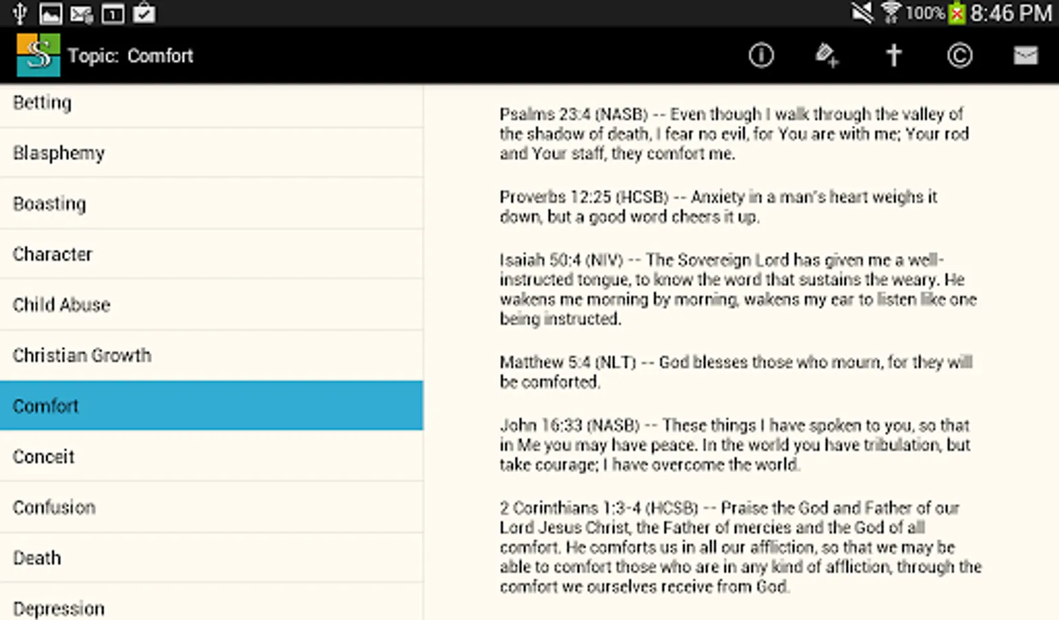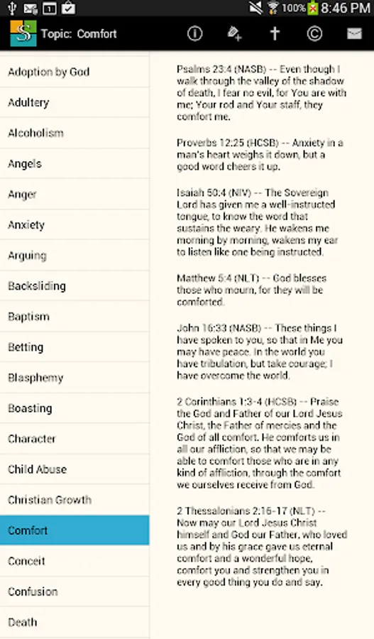 I hope you enjoy this reference application and that the Lord blesses you through its use. If you find Scripture Helps beneficial, please add a review. If you find anything questionable, or just want to make some helpful suggestions, please email me. My email address is here on the Google Play site or on the application's "About" page.
