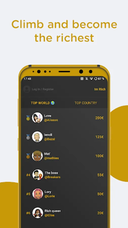 Obtain notoriety and show that you are rich and powerful. You can add a message to each payment, which will be visible on your profile. Become the best of I'm Rich!