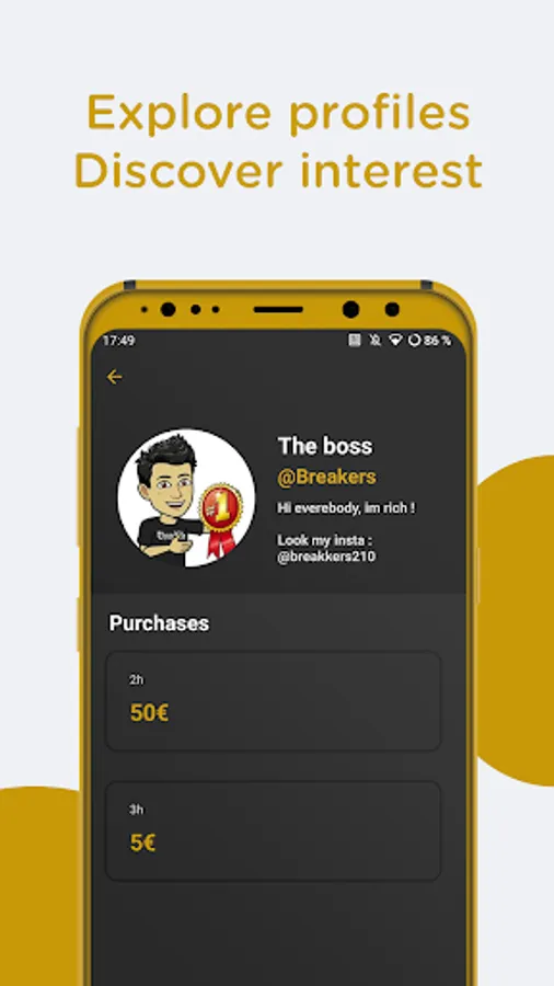 Climb the rankings by paying and get the medal of the richest. Everyone will see you and your profile will be seen many times to promote your Instagram or your website for example.