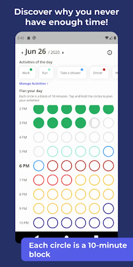 Using the app you'll see how little time you have. However, you'll also be able to track it much more efficiently, building a routine with daily habits that best fit your lifestyle.