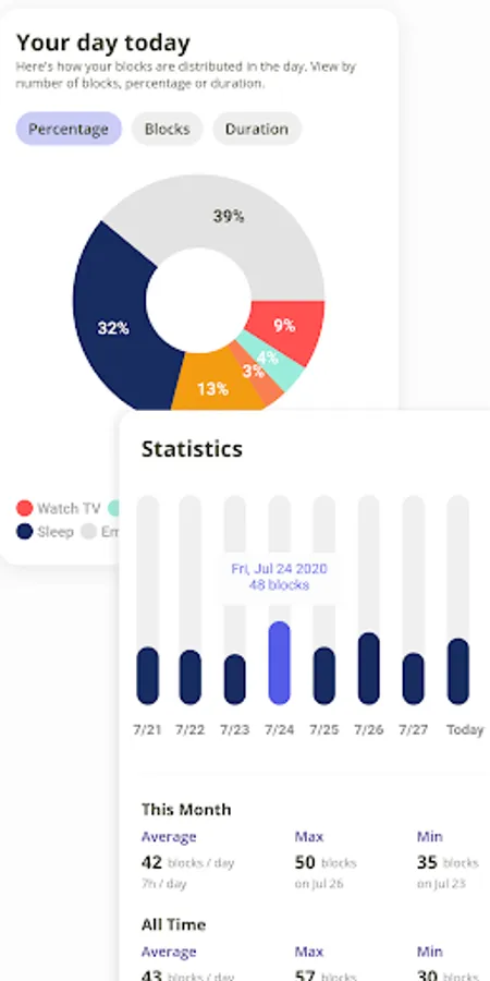 - A blocks-based visualization of every single day: time block your way to your goals and end procrastination!