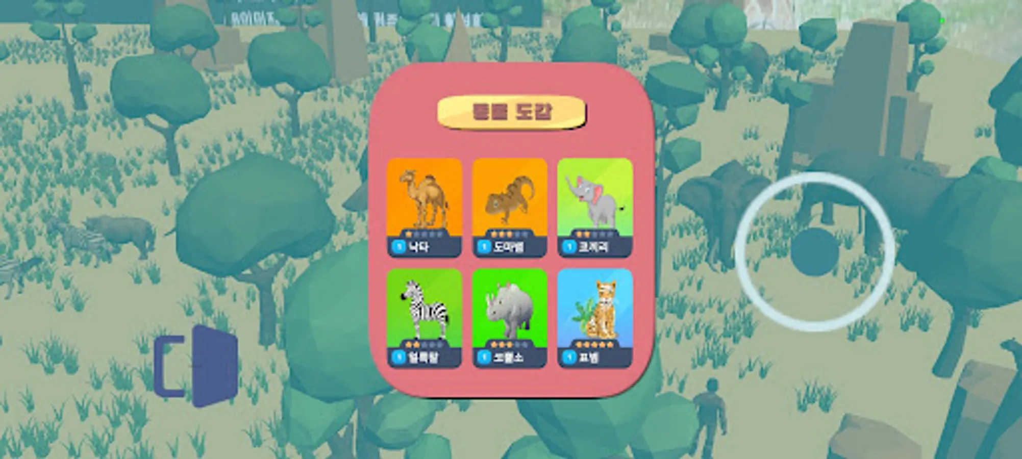 You can indirectly experience various animals and plants by moving your character in the animal kingdom implemented in the AR world. By recognizing the photos provided through the site below on the screen and solving the quizzes, you can feel the growing number of forests. As you progress through the quizzes, you can meet various natural phenomena such as wind and rain and dense forests.