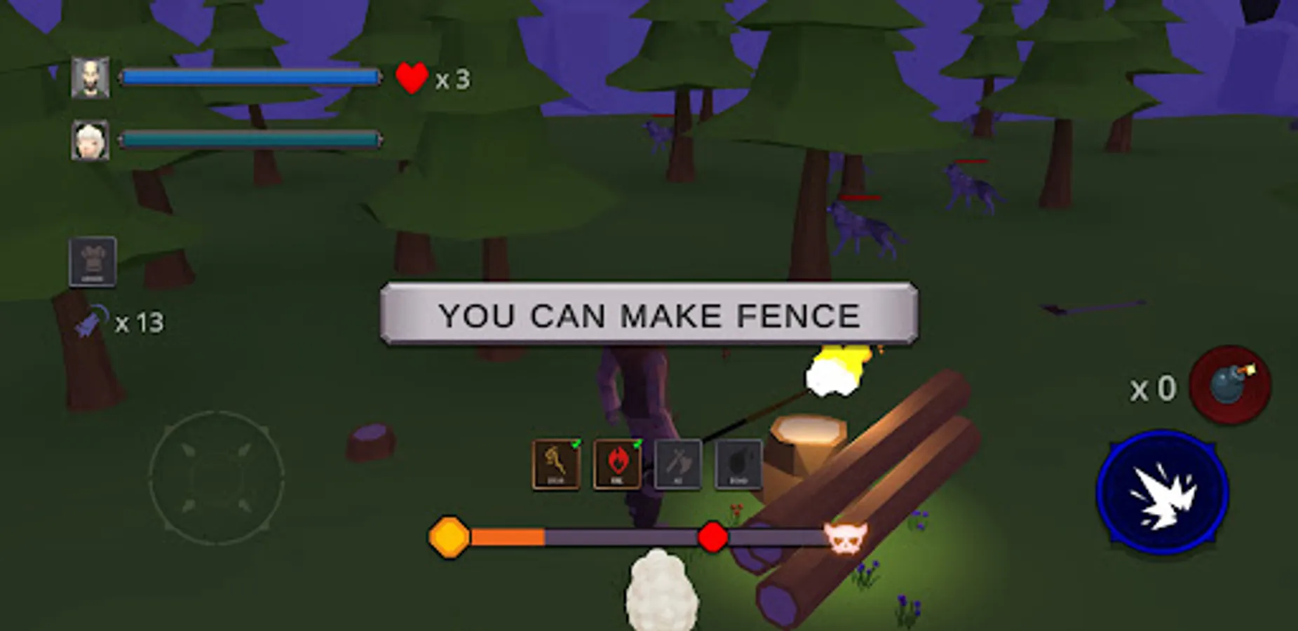 그 전에 주변의 무기를 찾아내 늑대의 공격을 최대한 막으세요.