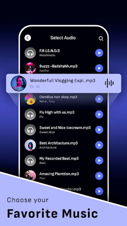 Choose from a vast collection of royalty-free music tracks to find the perfect sound for your content. Whether you're aiming for a relaxed vibe, an energetic beat, or a dramatic underscore, the "add music to video free" app's extensive library ensures you'll find the ideal music to compliment your voice recordings. You can search by genre, mood, tempo, or instrumentation to easily discover the right sound for your project.