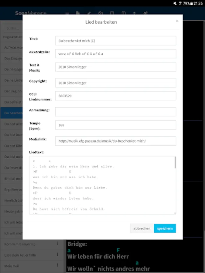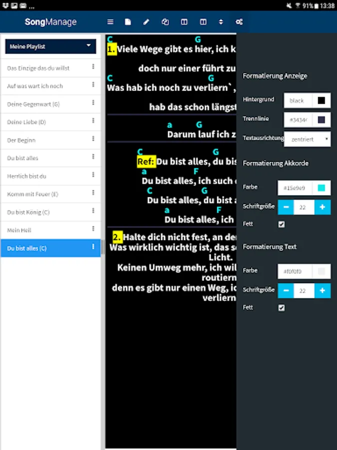 With this app you can easily manage your lyrics with chords, create setlists and share them with your band members.