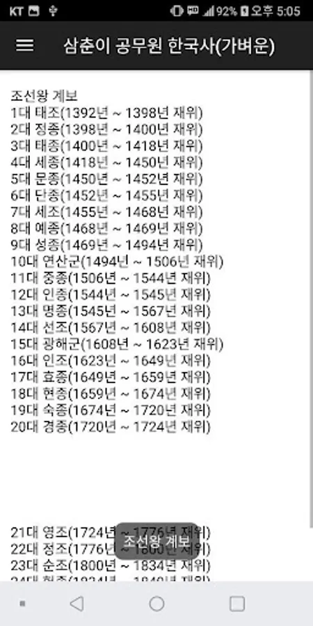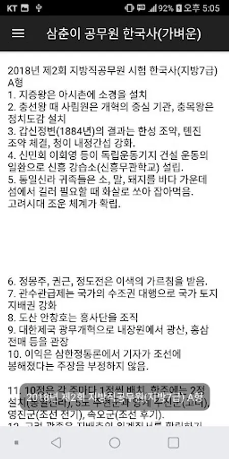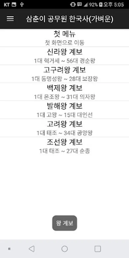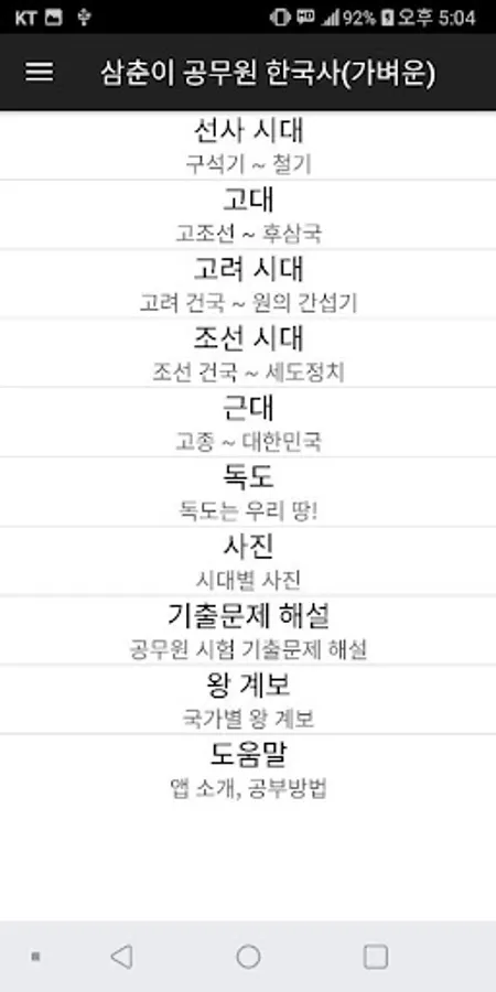 그다음 공무원 한국사를 준비하시는 분들에게 도움이 되었으면 하는 마음으로 삼춘이 공무원 한국사 앱을 만들었습니다.
