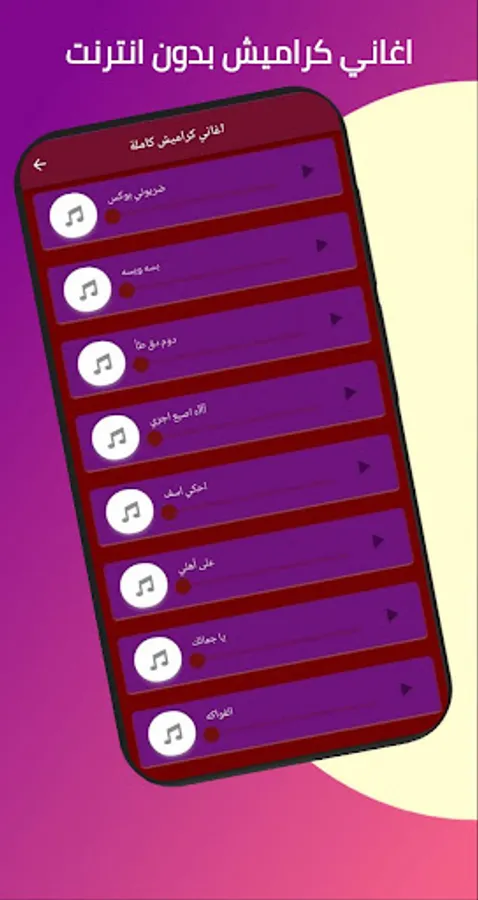 The Karamish songs application without the net contains all the complete Karamish songs and contains the download of children's songs without the net and the features through the Karamish songs program without the net