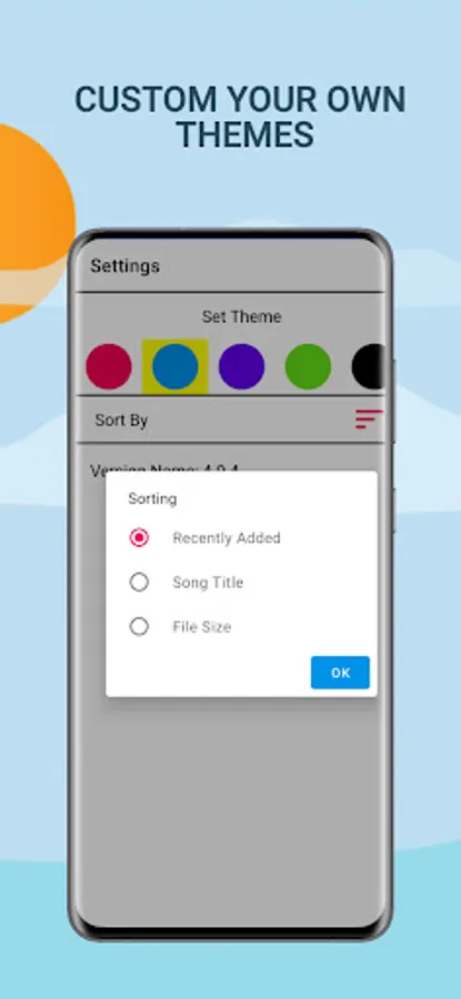 -> In this Application, you can customize your setting and themes by yourself in the Music player.