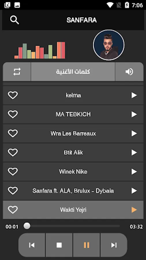 The best songs of the Tunisian rap artist Sanfara in one application without the net