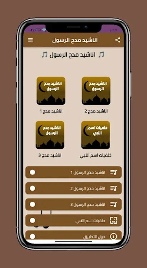 The application of songs praising the Prophet 2022 without mp3, where you can through the application listen and download the most beautiful songs and praises of the Messenger, may God bless him and grant him peace.