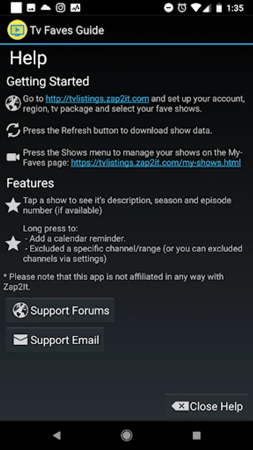 - This app is not affiliated with Zap2It in any way.