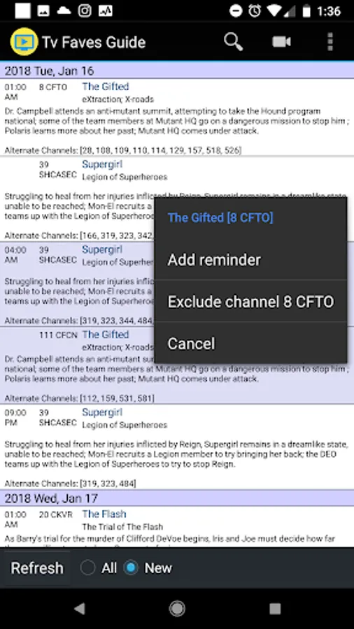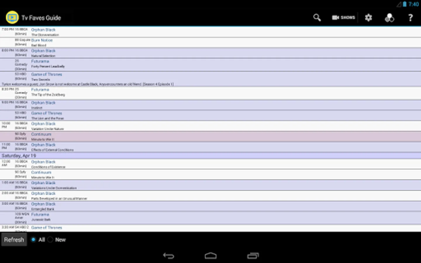 Please note that this app is for Zap2It favorite shows and not favorite channels.