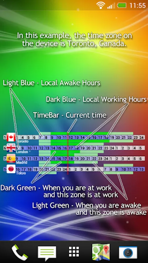 World Clock Widget was designed to help plan meetings across multiple time zones. Most time widgets will only show you what the time is right now. World Clock Widget lets you easily see when multiple time zones overlap, in one simple view.