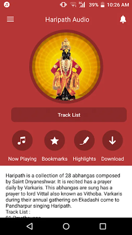 This app contains entire 28 Abhangas, Jai Jai Ram Krishna Hari name chant and Sunder Te Dhyan bhajan sung by Prasanna Mhaisalkar.