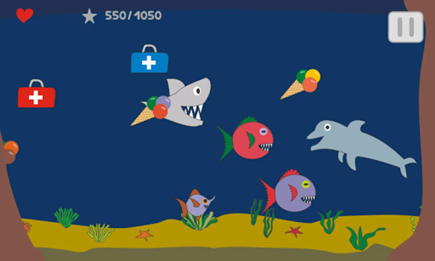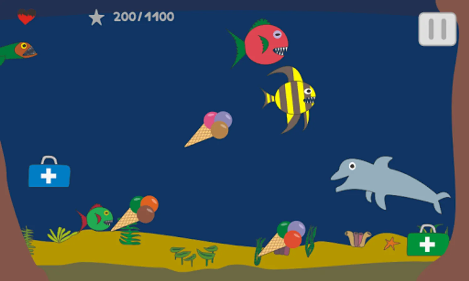 In order to get an aid bag or ice scream the dolphin has to touch one of them.