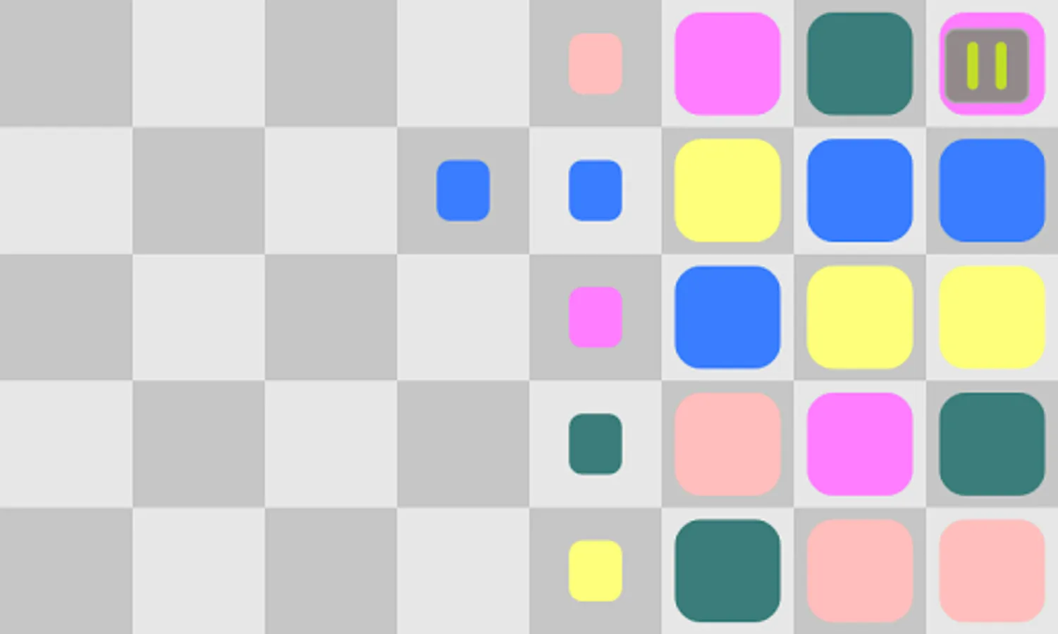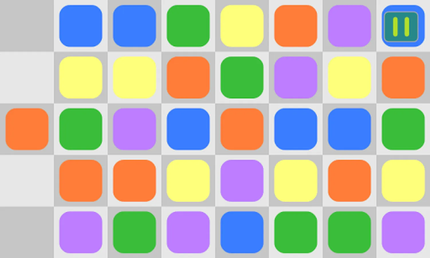 As soon as you see the same color next to it touch the running color and one column of colors disappears.