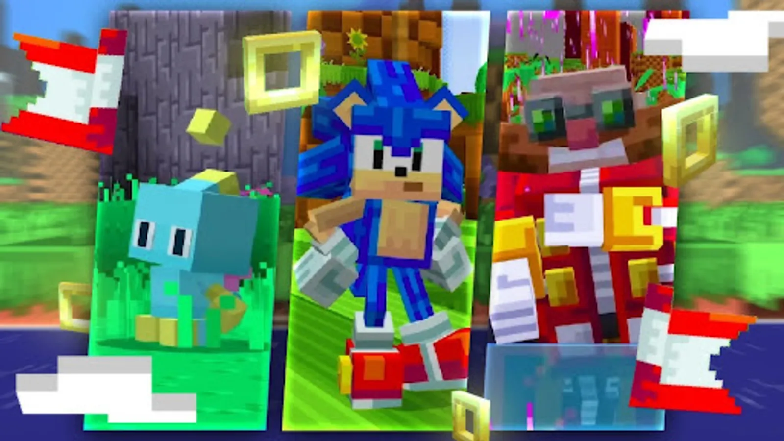 Mod Sonic the Hedgehog races into Minecraft at supersonic speeds! Sprint, roll, and spring off enemies through iconic zones, with infinite gameplay. Master the thrilling abilities of Sonic, Tails, Knuckles, and more! Compete with friends for high scores. Unlock achievements, characters, new zones, and a challenging Eggman Mode! Includes 24 popular skins.