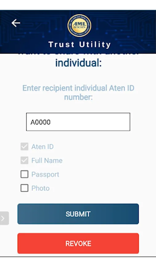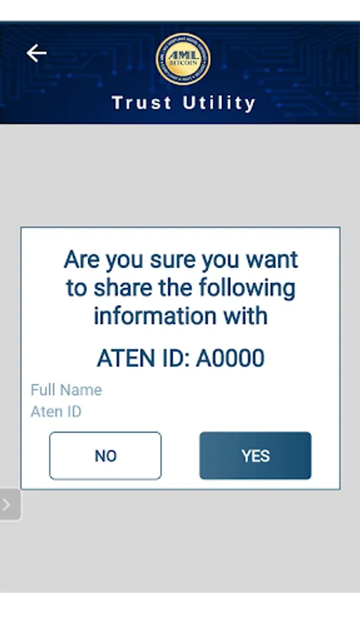 If you are talking to someone and they want to confirm you are who you say you are, then you can ask them for their personal identification number (Aten-ID) and then insert it in your mobile application in the Share Profile section. Select what you want to share, then do a biometric to confirm it is you that wants to share the data. At anytime you can revoke access to your data.