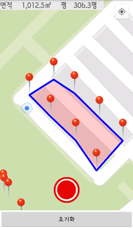 Area measurement of three or more points for storage coordinates or real-time position (units: square meters, square)