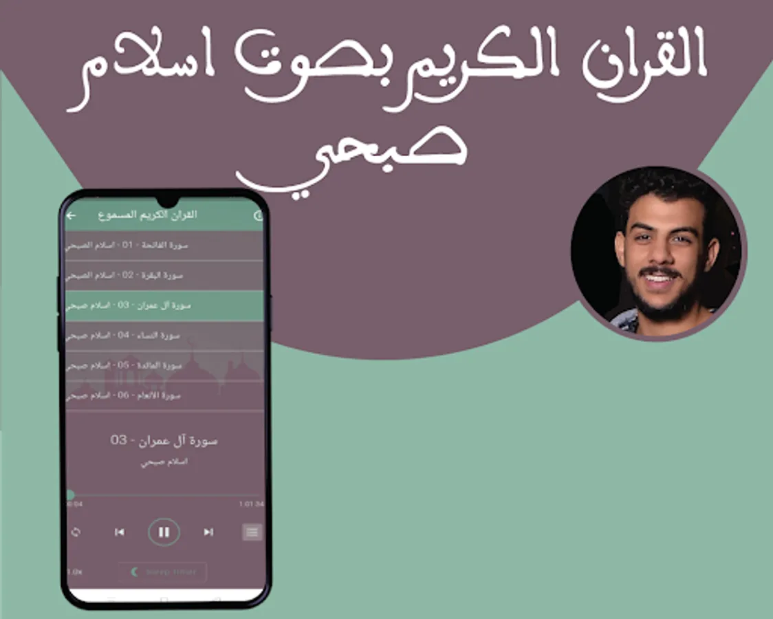 The application allows you to hear the sweetest recitations of Islam Sobhi through your mobile phone or tablet with ease, and the complete Quran application is distinguished by the voice of Islam Sobhi by being available on the store for Android phones.
