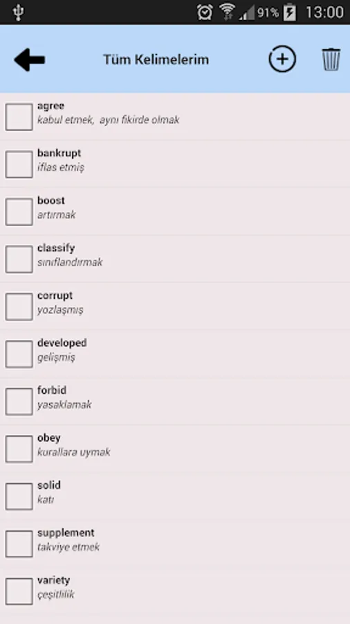 All the words you wish your information, you can test your knowledge by selecting the word or words you have learned that you added.
